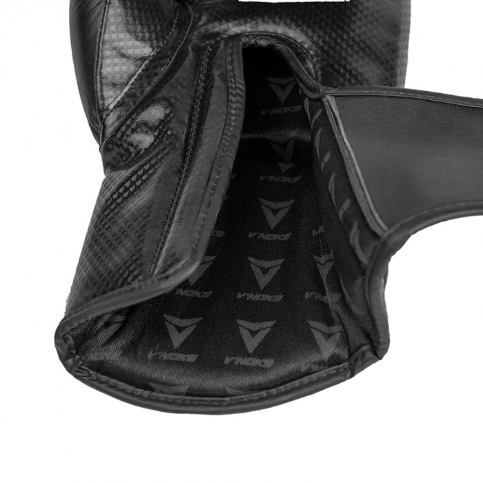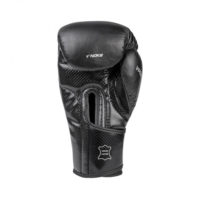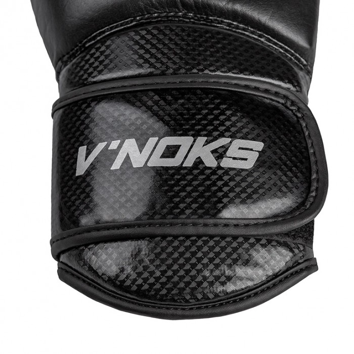 Модель выполнена в лаконичном черном цвете, запястье и ладонь из синтетической кожи с тиснением под карбон. Перчатка отмечена логотипом и надписью V`Noks на тыльной стороне и на запястье.